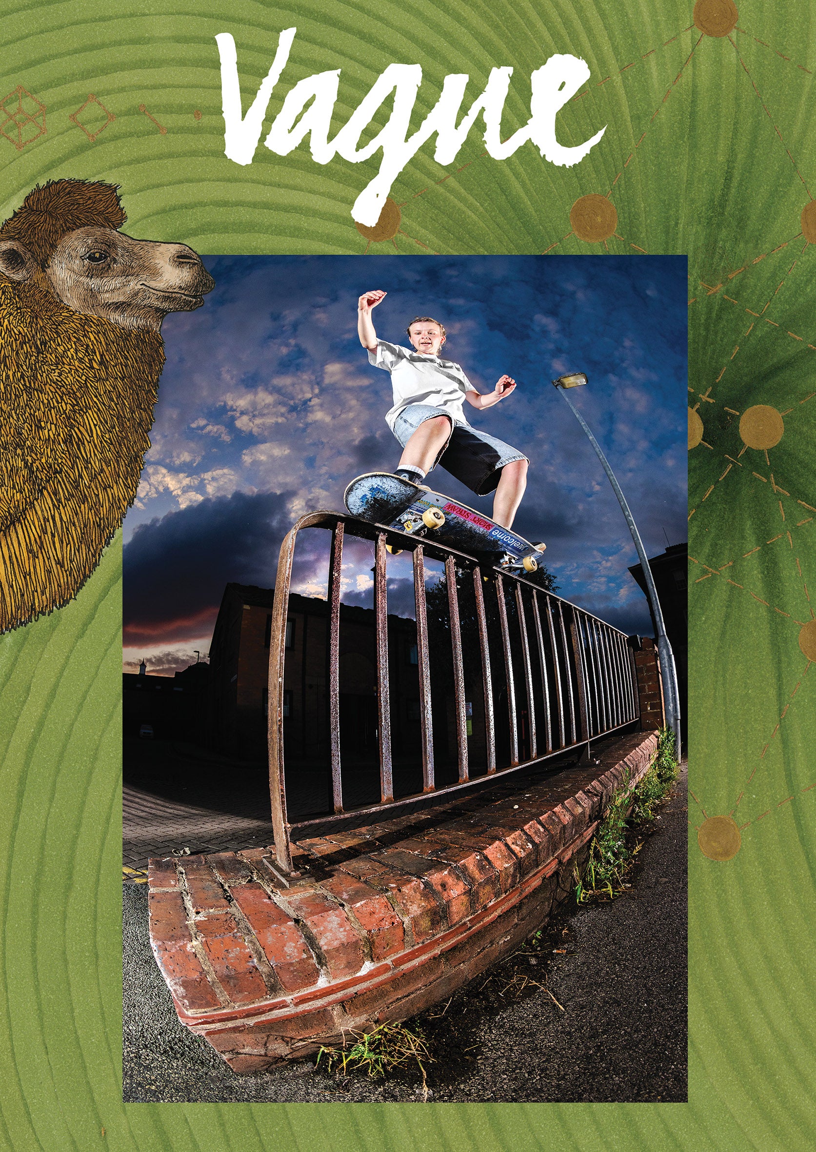On the cover we have Yorkshire warrior and Short Straw legend Izzy Almond with one hell of a ride on 50-50 grind, photographed by Reece Leung and surrounded by mag fav Soy Panday's incredible artwork. It may look like Izzy is about to spark out the camel but we can assure you she's an animal lover and they get on in real life, they just staged it to look like they're having a scrap (as was in fashion on Google Maps about a decade ago).